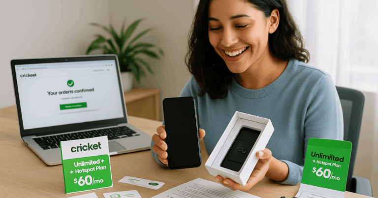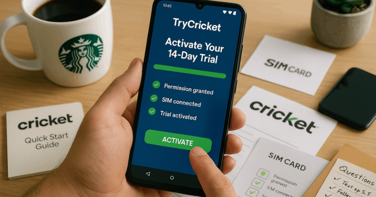 - Inserta y activa – Tras recibir tu SIM al siguiente día hábil, colócala en el dispositivo, visita cricketwireless.com/activate e ingresa los datos de tu pedido. Un reinicio finaliza la activación del servicio.